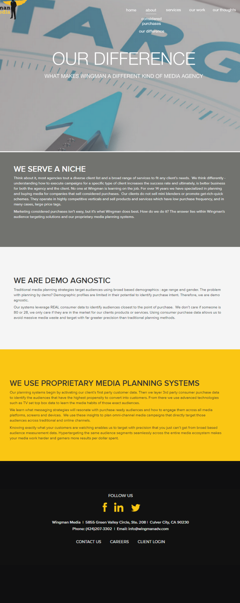 What makes Wingman a different kind of media planning agency? Our Difference answers that question, but the old narrative fails to make a strong argument that Wingman’s unique approach and expertise provides the best solution to client challenges.